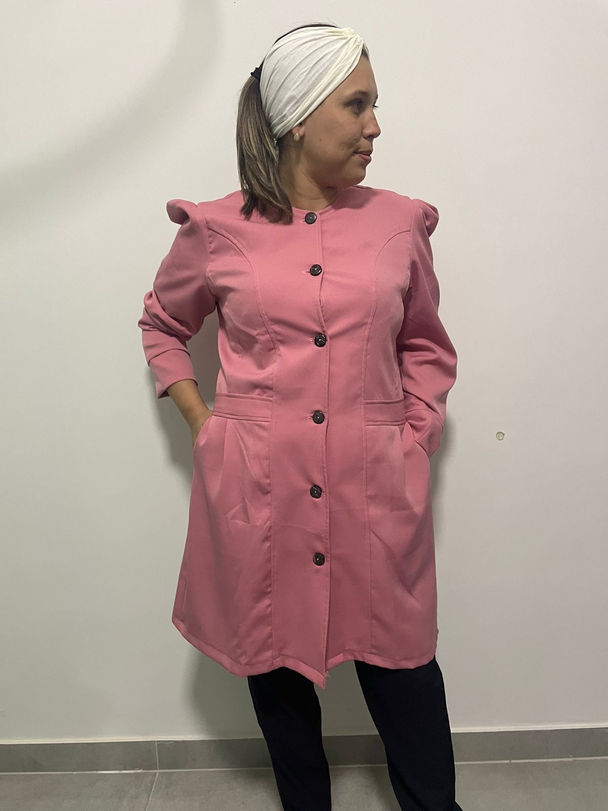Jaleco com modelagem moderna, perfeito para quem busca elegância e conforto para o dia a dia de trabalho. O toque diferenciado dos botões em madeira natural traz um charme artesanal e sofisticado à peça.